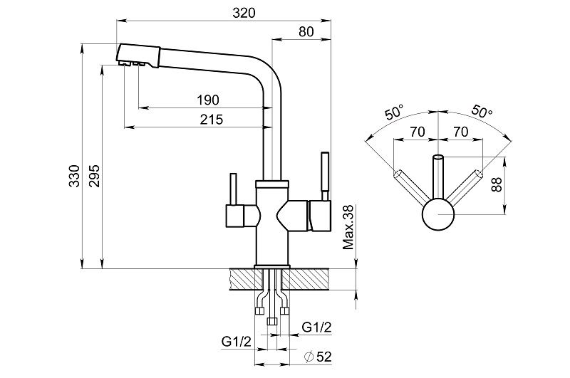 - Выдвижной излив:нет
