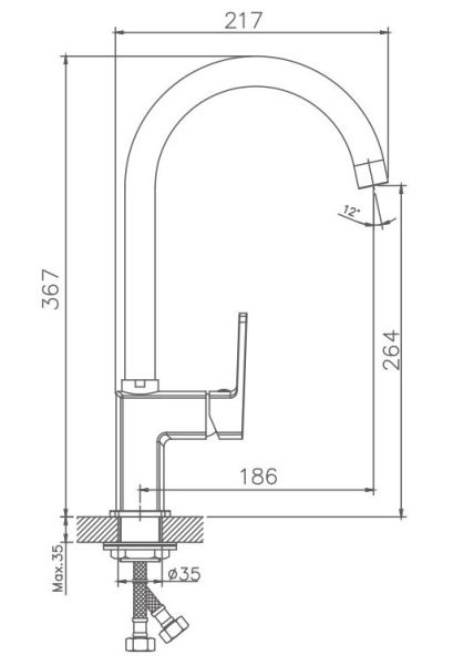 - Высота смесителя:36.7