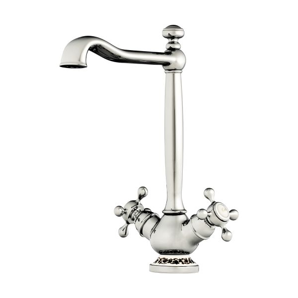 • Эксклюзивный классический дизайн, уникальное исполнение с добавлением керамического элемента с восточным орнаментом; • Цвет: Хром • Высокий излив обеспечивает максимально удобное использование смесителя; • Высококачественная латунь сохранит воду чистой и здоровой; • Аэратор произведен из пластика, благодаря чему на нем никогда не появится известкового налета и ржавчины; • Коробка внутри проложена поролоном, который обеспечит сохранность изделия при транспортировке; • Полный набор креплений, соединительных шлангов, подробная инструкция и гарантийный талон в комплекте.