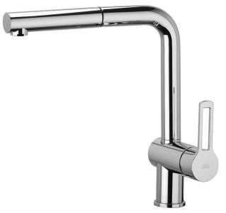 Смеситель для мойки с поворот.изливом и выдвижным 1 режим.душем из ABS, ХромСмеситель для кухни Paffoni Ringo RIN185CR.ВНИМАНИЕ! В монтажной схеме указан европейский стандарт подводки 3/8, мы предлагаем комплект, адаптированный к российским условиям, со стандартом подводки 1/2.Комплектация: