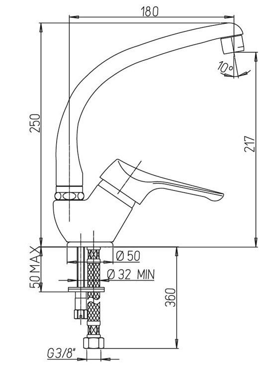 - Высота смесителя:25
