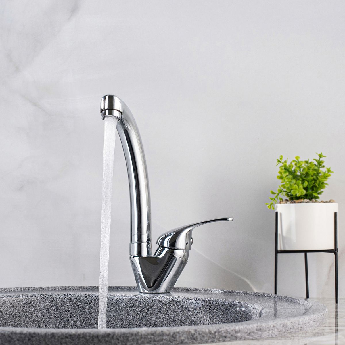 Смеситель для кухни с высоким поворотным изливом