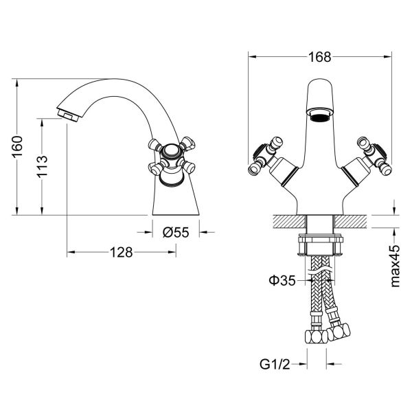 • Высота смесителя:
