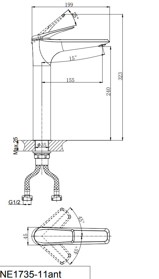 - Высота смесителя:32.3