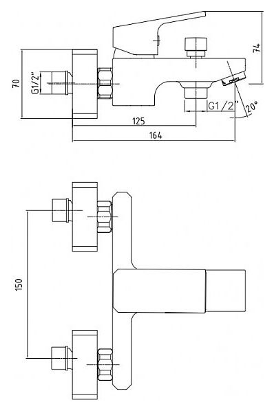 Смеситель для ванны E.C.A. Tiera 104802469EX хром