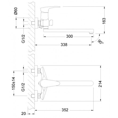 - Аксессуары в комплекте: шланг 1,5 м, настенное крепление, 1-функциональная лейка Ø100 мм