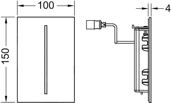 Комплект для монтажа бесконтактного инфракрасного смывного устройства, совместим с корпусом U 2 сливного клапана писсуара TECE; минимальное рабочее давление в системе — 0,5 бар; возможность настройки времени смыва, паузы для экономии воды, установки крышки писсуара, режима чистки, предварительного и гигиенического смывов. Комплект поставки: • Магнитный клапан с грязевым фильтром • Сверхплоская прикручиваемая металлическая панель с датчиком обнаружения • Крепежные элементы • Ключ для программирования • Батарея 7,2 В Размеры (Ш x В x Г): 100 x 150 x 4 мм