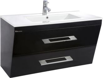 Тумба Bellezza Берта шириной 90 см в черном глянцевом исполнении — это смелое решение для современных ванных комнат, где дизайн встречается с функциональностью. Модель с интегрированной раковиной и двумя вместительными ящиками демонстрирует внимание к деталям: от премиальных материалов до продуманной эргономики.