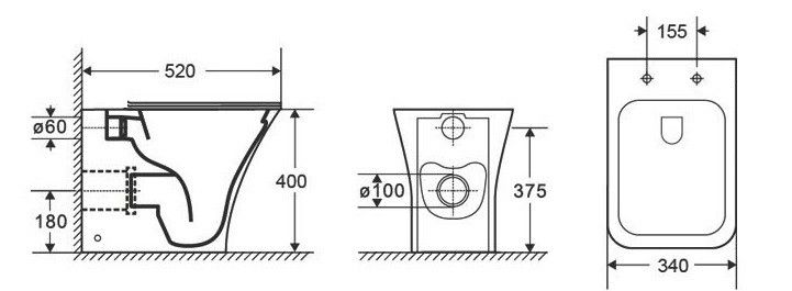 - Укороченный унитаз:нет