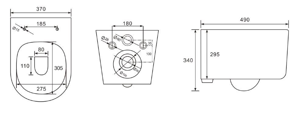 - Укороченный унитаз:нет